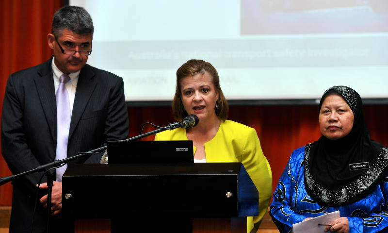 Taklimat disampaikan Ketua Penyelaras Pusat Penyelarasan Agensi Bersama (JACC) Judith Zielke dan jurucakap Biro Keselamatan Pengangkutan Australia Peter Foley.