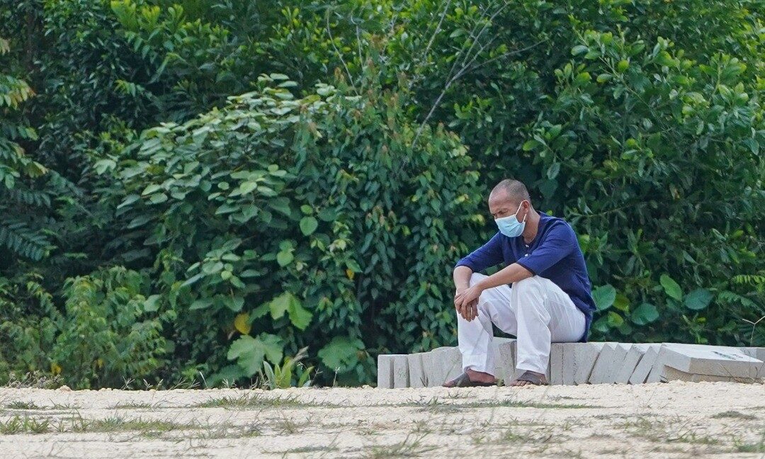 | Shuib kelihatan terduduk dan termenung seketika selepas membaca doa di pusara isterinya, Allahyarham Siti Sarah. |