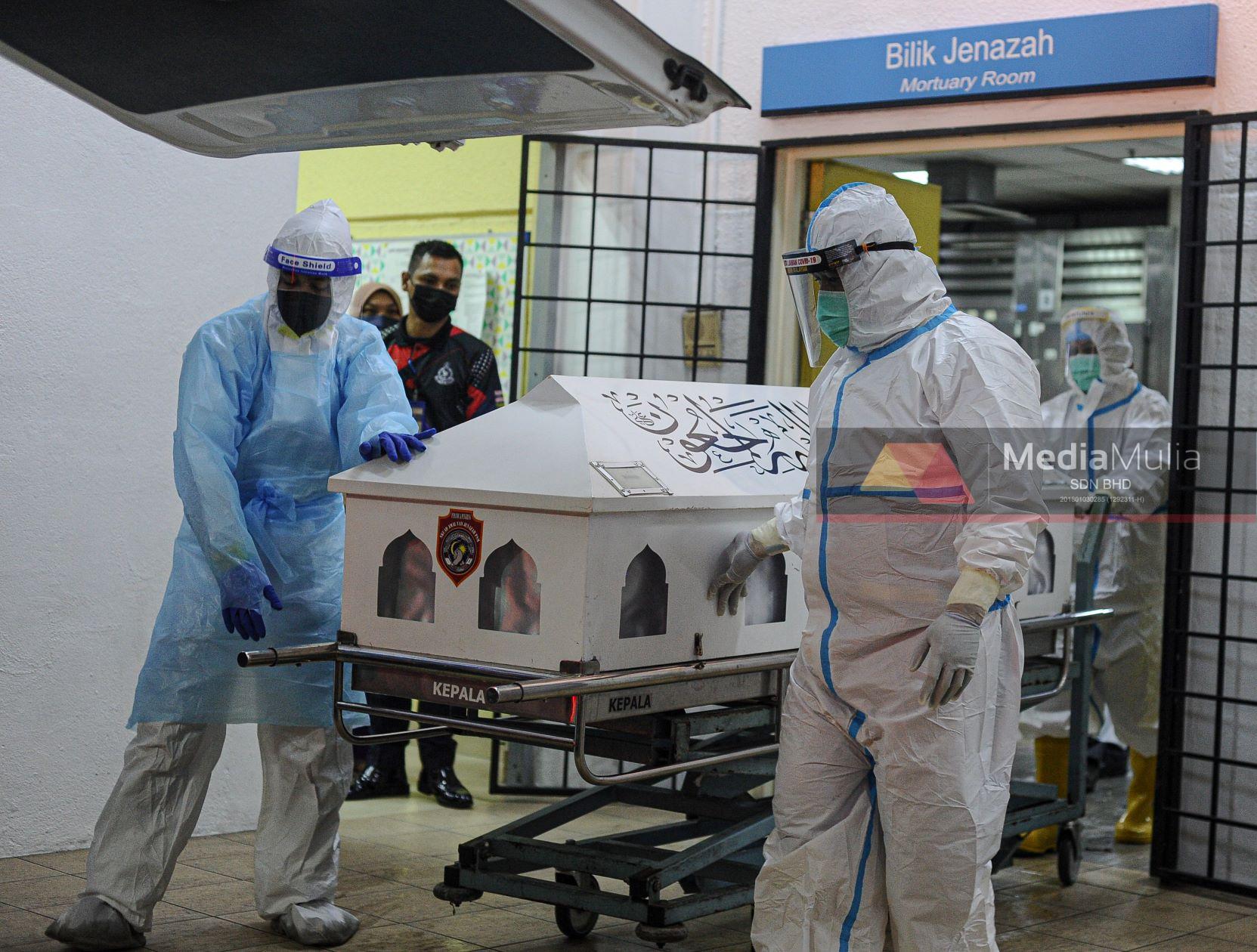 Jenazah dikafan dan dimandikan di Hospital Canselor Tuanku Muhriz (HCTM) sebelum dibawa ke tanah perkuburan dengan van jenazah.