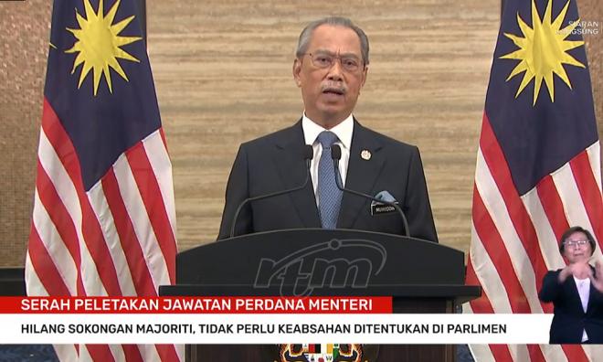 Muhyiddin akhirnya tunduk kepada tekanan itu selepas 15 Ahli Parlimen Umno menarik balik sokongan kepada beliau dan kerajaan Perikatan Nasional (PN) pimpinannya pada 7 Julai lalu.