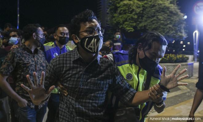 Polis kemudian bertindak menarik peserta perhimpunan dan mana yang enggan kerana bertegas mahu tahu sama ada mereka ditahan atau tidak, kemudian diangkat anggota keselamatan terbabit.
