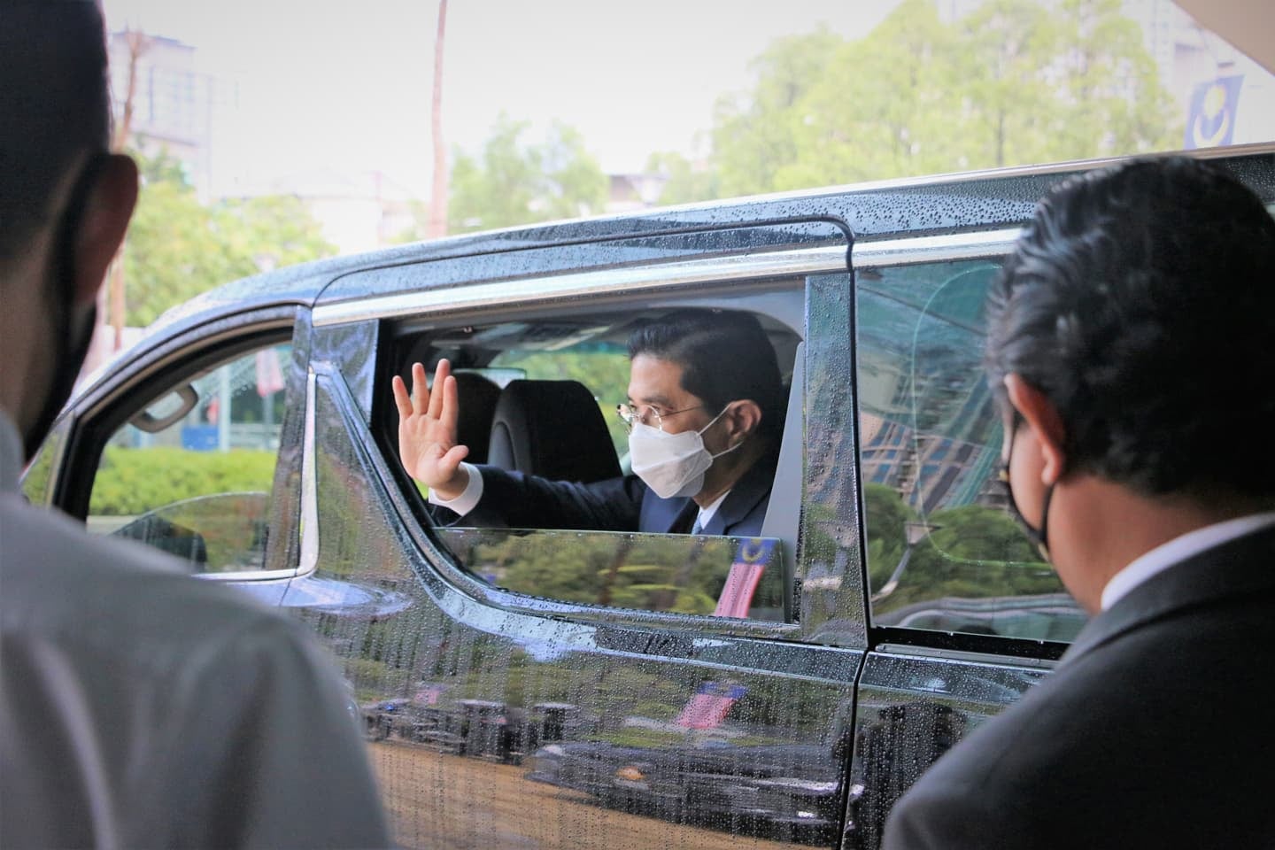 | MOHAMED Azmin Ali melambai tangan selepas mengucapkan selamat tinggal kepada kakitangan Kementerian Perdagangan Antarabangsa dan Industri. |