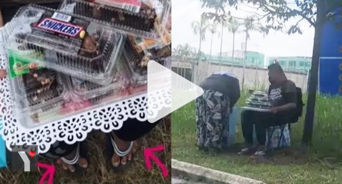 Menurut video yang dikongsikan, dapat dilihat pemuda itu meletakkan barangan dagangan di atas peha sahaja sambil memegang jualannya, pasti lenguh dan penat buatnya namun dia tetap berusaha mencari rezeki yang halal.“boleh nampak kaki dia terketar-ketar”